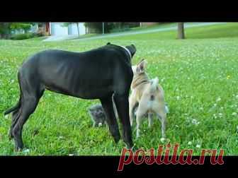 Видео: Миниатюрный чихуахуа защитил котят от большой собаки