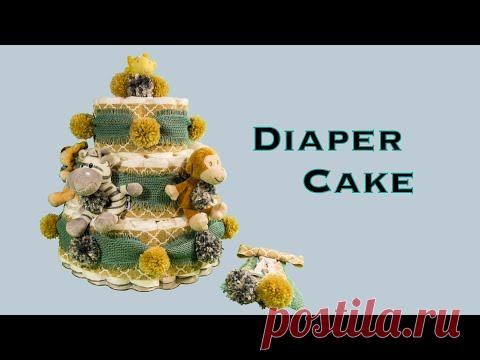 DIAPER CAKE & CORSAGE Baby Boy Shower Gift (DIY, How to Make, Rolled Diaper Method)