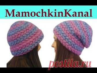 Шапка крючком Колоски Косички пышными столбиками Шапка с отворотом Бини Узор косы горизонтальные Можно связать шапку крючком из тонкой пряжи, мохера. Она связана крючком узором Колоски (Косички) из пышных столбиков. Все МК по узору Колоски из пышных стол...