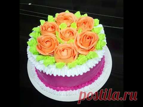 Торт с розами . Украшение торта кремом