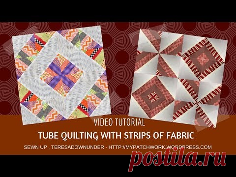 Two blocks using tube quilting with fabric strips - video tutorial
