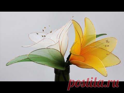 Flores hechas con medias de nylon y alambre