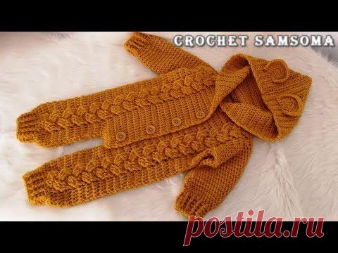 (1702) كروشيه سالوبيت بيبي بغرزة الضفيرة - الجزء الاول كروشيه غرزة الضفيرة / Crochet Baby Overalls - YouTube
