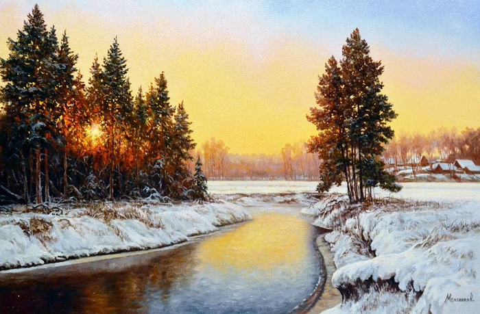 Зимние пейзажи и охота. 3 часть.Художник Мельников Александр Анатольевич .