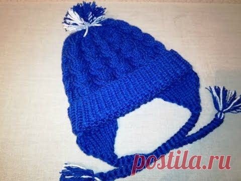 Детская шапка спицами с ушками узором косы. Как я вязала.