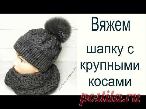 Шапка с объемными косами /// Шапка спицами/// Мастер-класс.
