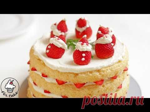 Легкий НОВОГОДНИЙ ТОРТ. ДЕД МОРОЗ из клубники