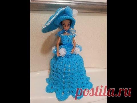 Crochet Fashion Doll toilet paper roll cover or birthday cake topper Part 1 of 2 DIY tutorial
