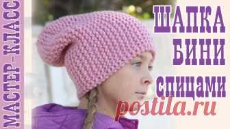 Шапка бини спицами. Простая шапка. Мода 2019. Мастер Класс Вязаная шапка бини спицами. Мастер класс по вязанию шапки поперек из толстой пряжи спицами. Уроки вязания как связать красивую шапку спицами из пряжи. Видео ...
