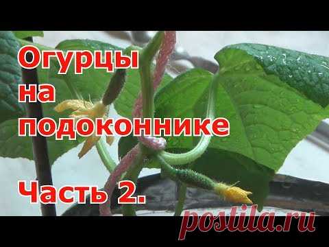 Огурцы на подоконнике 09.03. Подкормка, подвязка, ослепление Часть 2