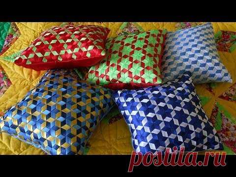 Плетение из лент для декоративной подушки