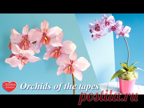Орхидея из Ленты . Подарочный горшочек / Orchids of the tapes. tutoria. gift pot