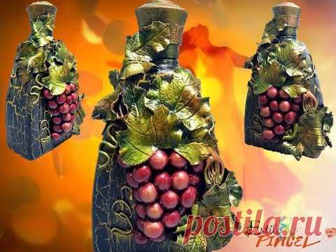 BOTELLA DECORADA CON UVAS EN PORCELANA FRÍA O POCELANICROM