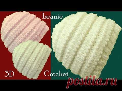 Gorro a Crochet en punto acordeón 3D tejido tallermanualperu
