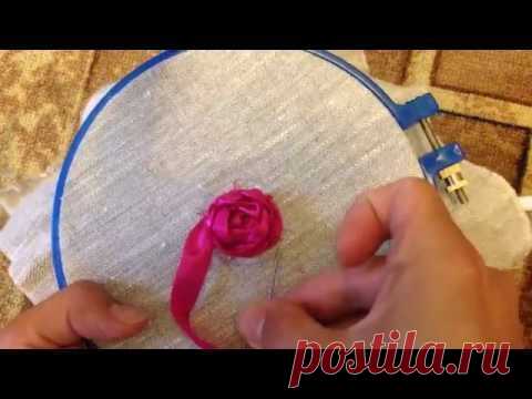 Роза вышитая лентами. Самый простой способ. / Rose embroidered ribbons. The easiest way to do it.