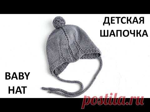 Детская шапка с мысиком. Вязание спицами. Baby hat knitting
