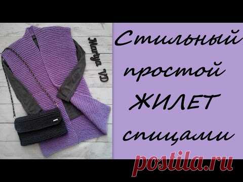 Мои работы. Модный, стильный, простой ЖИЛЕТ платочной вязкой. Подробное описание. Mariya VD.