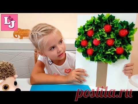 Объемная аппликация ЯБЛОНЯ С ЯБЛОКАМИ из цветной бумаги и крышек от пластиковых бутылок Поделки