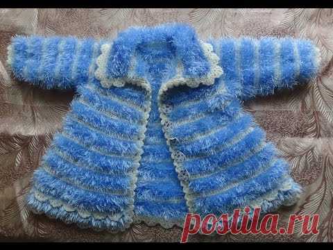 Вяжем крючком - пальто из травки для девочки. Часть 2