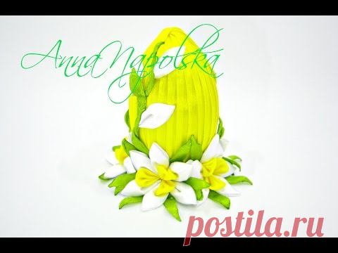 Писанка з нарцисами канзаши. Пасхальное яйцо с нарциссами. Easter egg kanzashi