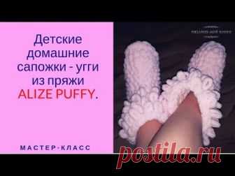 Детские домашние сапожки - угги из пряжи ALIZE PUFFY.