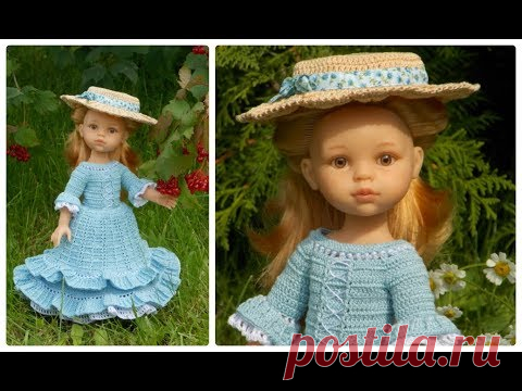 Вяжем крючком платье и шляпку для куклы. Наряд Анна.