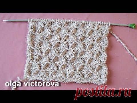 Рельефный узор крупными сотами 426 Узоры спицами - YouTube