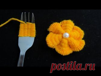 🔴➤● ВЫШИВКА С ВИЛКОЙ | Ручная вышивка. Удивительный трюк, Легкая цветочная вышивка с вилкой, Швейная рубка