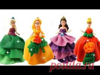 Making Play Doh Super Sparkle Dresses For Disney Princesses Dolls Frozen Elsa & Aurora, Belle