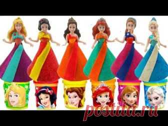 Making New Play Doh Dress for Disney Princess Frozen Elsa & Anna, Belle, Aurora, Ariel, Snow White