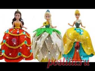 Play Doh Sparkle Disney Princess Super Glitter Dresses Making For Frozen Elsa & Aurora , Belle