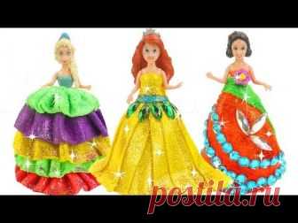 Play Doh Disney Princess Sparkle Making New Dress for Disney Princess Frozen Elsa, Ariel, Snow White