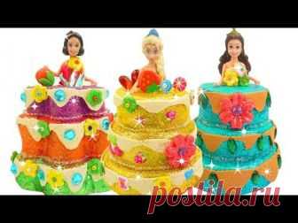 Play Doh Disney Princess Sparkle Cake Dresses for Disney Princesses Frozen Elsa & Belle , Snow White