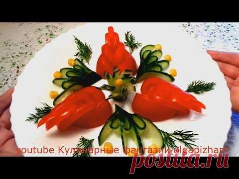 КАК КРАСИВО НАРЕЗАТЬ ПОМИДОРЫ И ОГУРЦЫ! Украшения из овощей!
