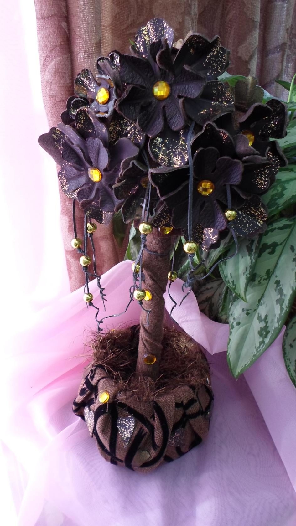 САЛФЕТНИЦА-КОНФЕТНИЦА ТОПИАРИЙ ДЕРЕВО СЧАСТЬЯ❤ ❤ ❤ ❤ ❤ "КАРАМЕЛЬ В ШОКОЛАДЕ"❤ ❤ ❤ ❤ ❤ (НАТУРАЛЬНАЯ КОЖА,СТРАЗЫ,БУСИНЫ,СТВОЛ-КЛЁН)ГОТОВАЯ РАБОТА.