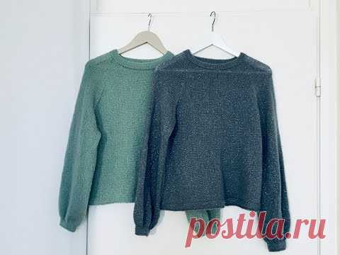 МК. Простой блестящий джемпер спицами. Реглан сверху. Без швов.