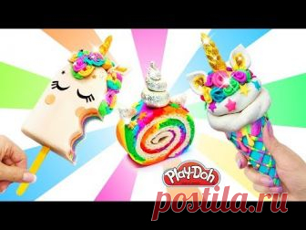 Play Doh Unicorn Set. How to Make Rainbow Food. Creative DIY for Kids