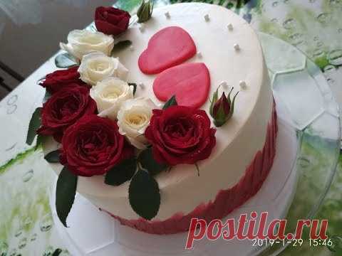 Оформление тортика живыми цветами.