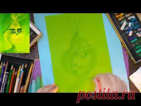 How to Draw The Grinch Coloring Pages for Kids.Как нарисовать Гринча пастелью.