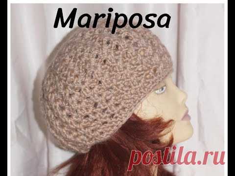Объёмный ажурный берет крючком из 2 -х видов пряжи.Легко и быстро. Gorro de ganchillo.