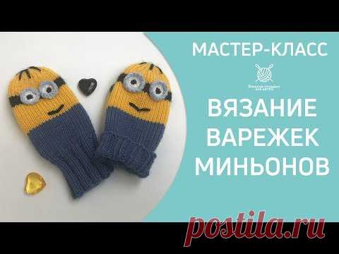 Вязание детских варежек Миньонов спицами 12+