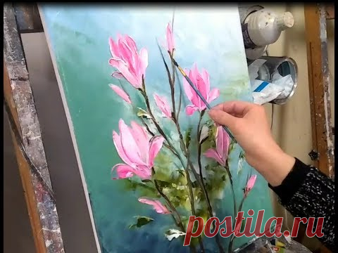 PEINTURE AU COUTEAU : LES MAGNOLIAS (KNIFE PAINTING°) par Nelly LESTRADE