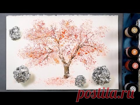 Cherry Tree Aluminium Foil Painting Technique for Beginners | Easy Creative Idea