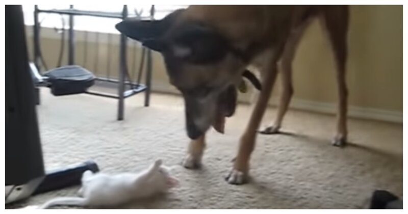 ОТСТАВНОЙ ВОЕННЫЙ ПЕС ВПЕРВЫЕ В ЖИЗНИ ВИДИТ КОТЕНКА Пёс по кличке Шеф Х067 повидал множество вещей во время своей службы в армии, но никогда не встречал котят. Маленький белоснежный комок радости вызвал у сурового отставного "вояки" любопытство и замешательство.