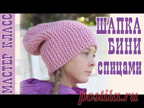Шапка бини спицами. Простая шапка. Мода 2019. Мастер Класс
