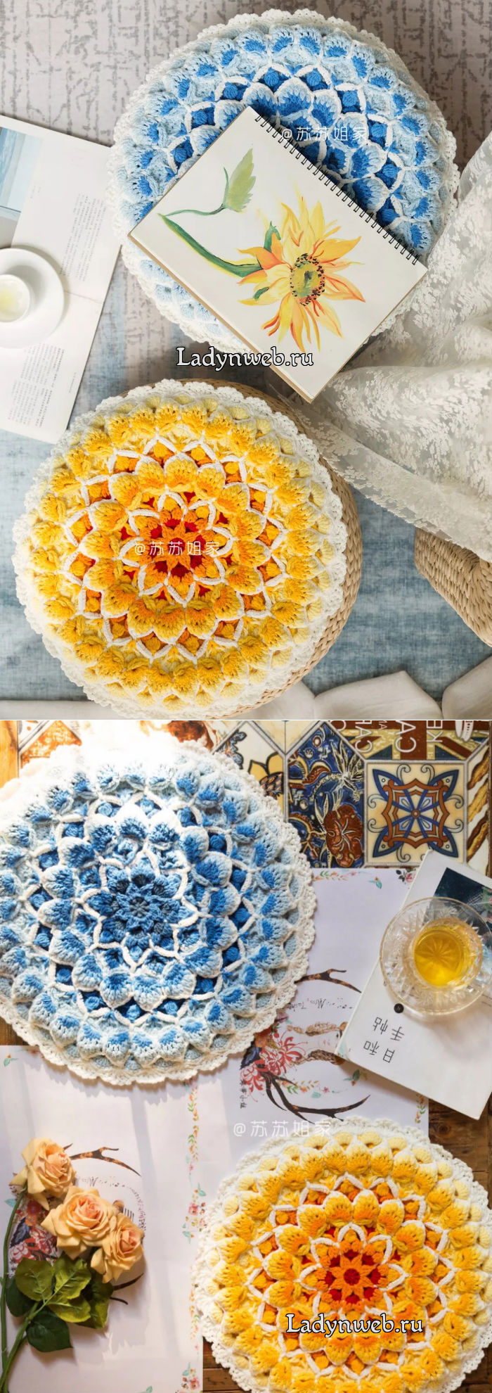 Сидушка на стул крючком. Сидушка крючком лотос. | Ladynweb.ru