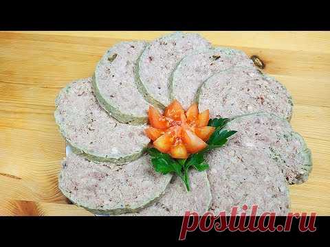 Домашняя колбаса печеночно-мясная Рецепт: Фарш - 800 гр. Печень - 500 гр. Сало - 200 гр. Яйца (крупные) - 3 шт. Крахмал - 3 ст.л. с горкой Манная крупа - 3 ст.л. с горкой. Соль - 1,5 ч.л. Чеснок - 3 зубчика. Перец черный - по вкусу