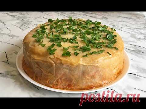 ПИРОГ "ГОЛУБЕЦ" Ингредиенты: - белокочанная капуста; - 750 г. свиного фарша; - 2 головки репчатого лука; - 1 морковь; - 100 г. сыра; - 150 г. сырого риса; - 350 мл. холодной воды для варки риса; - 0,5 ч. л. соли для варки риса; - свежая петрушка; - растительное масло для жарки; - соль, перец черный молотый по вкусу. Заправка для пирога: - 100 г. томатной пасты; - 125 г. сметаны; - 15 г. сахара; - 100 мл. холодной обычной воды; - соль, перец черный молотый по вкусу.