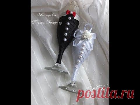 Свадебные бокалы Жених Невеста мастер класс/свадебные бокалы своими руками