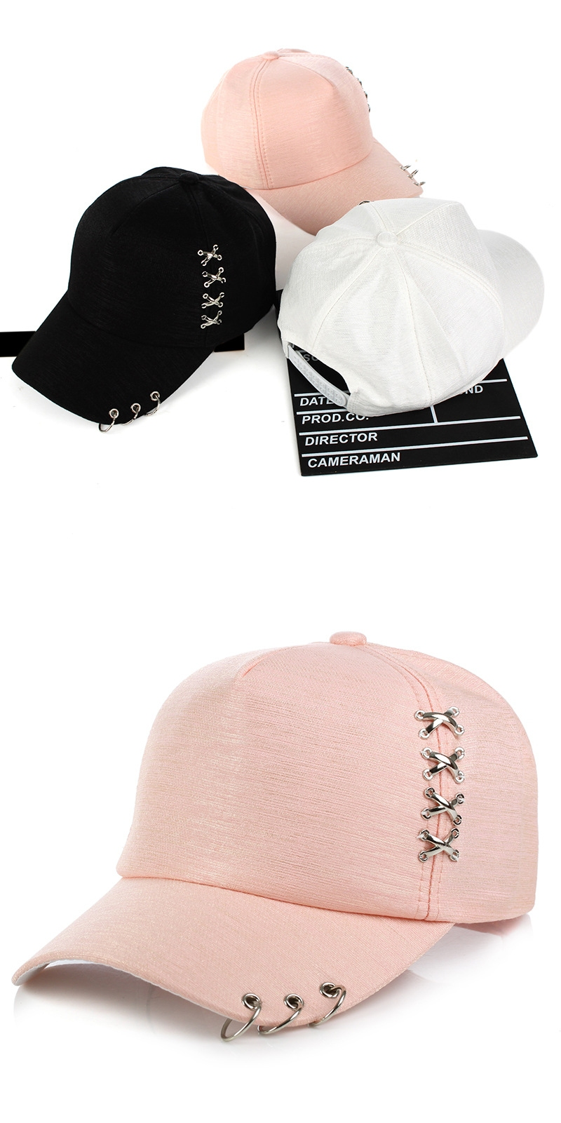 Кепка унисекс летняя однотонная с пирсингом и стальными крестиками - Аксессуары для одежды / СЮРПРАЙЗ